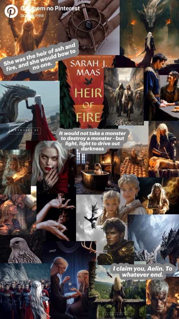 Celaena: perfeita, como em todos os livros kkkkkk. A evolução dela, de como ela começa a aceitar quem ela realmente é… É tão lindo de ver. O jeito como ela se recusa a ceder, mesmo quando tudo desmorona dentro da própria cabeça. Como ela busca se manter firme, mesmo quando tudo está dando errado…